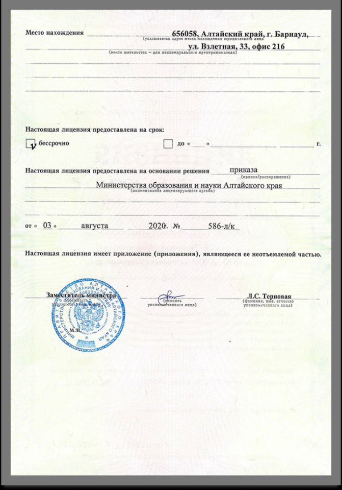 2. Образовательная лицензия: У нас имеется образовательная лицензия, что гарантирует легитимность и законность наших образовательных мероприятий.